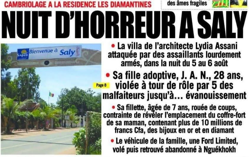 Le drame survenu à la résidence Les Diamantines à Saly dans la nuit du 5 au 6 août, marqué par une attaque armée, un viol collectif, des violences sur une fillette et un vol massif, est d’une gravité extrême. Ce n’est plus un cas isolé mais le symptôme d’une insécurité croissante dans les zones touristiques.